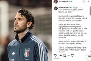 体育资讯4月2日讯 在意大利无缘世界杯正赛后,意大利国脚洛卡特利更新了社交媒体。