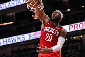 体育资讯4月10日讯 NBA常规赛,火箭半场73-56领先76人。