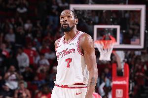 体育资讯4月11日讯 NBA常规赛,火箭在主场以132-136不敌森林狼,8连胜被对手终结。赛后杜兰特接受了媒体采访。