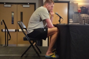 赛后,约基奇出席新闻发布会,脚踩一双小黄人拖鞋,反差萌拉满。